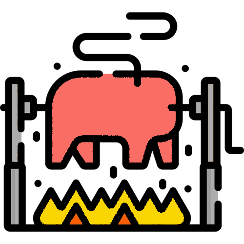 - méchoui traditionnel de cochon de lait, porcelet ou agneau à la braise