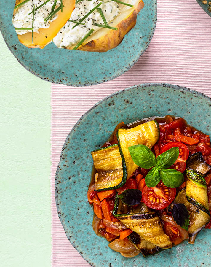Nos pommes de terre, légumes et crudités sont 100% cultivés dans les Bouches-du-Rhône. Notre crème provient de Normandie, selon la saison. Les pommes de terre sont cuites à la braise ; les légumes au four. Vous pouvez choisir entre légumes et salade de crudités, selon votre envie.